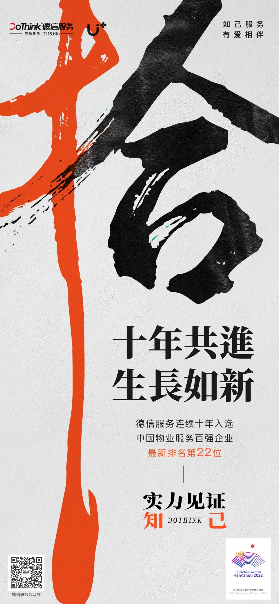 10年百强,不是功劳簿,而是责任书。10年百强,是德信服务在物业管理行业不断探索幸福之路,升级服务体验获得的行业认可。未来,德信服务将永葆初心,用服务力量精心浇灌幸福之花,让百万知己共享有爱生活。